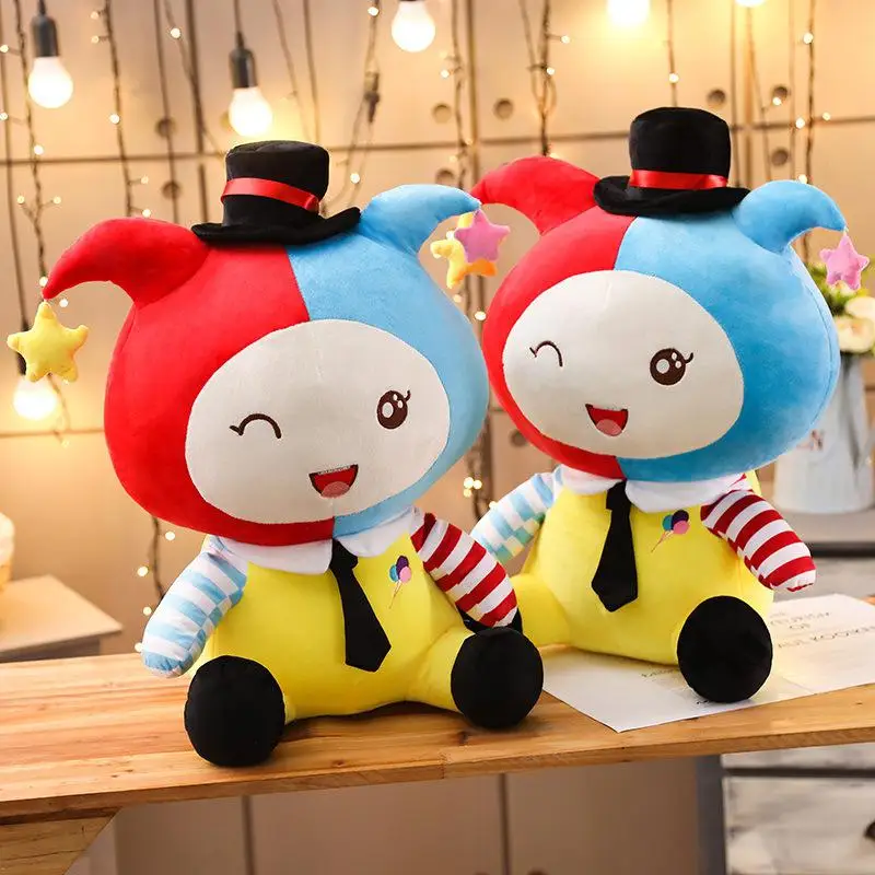 Best Seller 60cm Cute Clown Shape Plush Doll with Black Tie Hat Soft Cartoon Toy